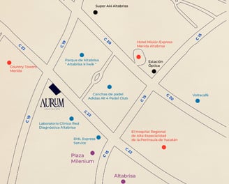 Aurum is located in Altabrisa, the most valuable residential area in Mérida, Yucatán.
